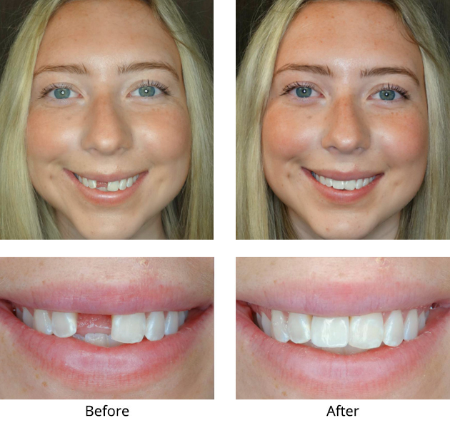 This patient lost her front tooth to a trampoline accident as a child. Thanks to a wonderful surgeon who placed a dental implant and Dr. Elam who made her a flawless crown, she finally has the beautiful smile she’s been waiting for!